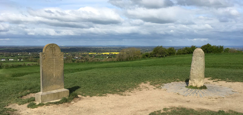 Auf der nächsten Wegstrecke lag Tara, dem frei zugänglichen Weiheort der irischen Hochkönige, einer Erdanlage mit Ringwall und verstecktem Ganggrab, von wo aus sich die prächtige, grüne Heckenlandschaft nach allen Seiten erstreckte. «The Words of Tara», Schutzworte, geschrieben auf der Brustplatte des Inselheiligen St. Patrick, bildeten Teil unseres Programms: in Anrufung der Elemente, sind sie dazu bestimmt, das Böse abzuhalten.